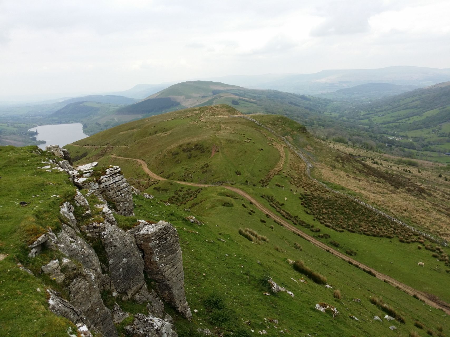 And so we wake on the final day of our (mainly) off-road trip from the north coast to the south coast of Wales. Our fantastic accommodation for the night (possibly topping the Elan Valley Hotel for me) has left us nicely rested, if still somewhat weary after 6 long days of hard riding. We pick up the Taff Trail cycle track before heading up into the Brecon Beacons, climbing via the Brinmore Tramroad. Back in the 19th century the tramroad plied limestone from the quarries high up in the hills and some of the old stone sleepers can still be seen embedded in the path. Toward the top the riding becomes a bog-jumping extravaganza. I’ve been up here many times before and never known it this wet.